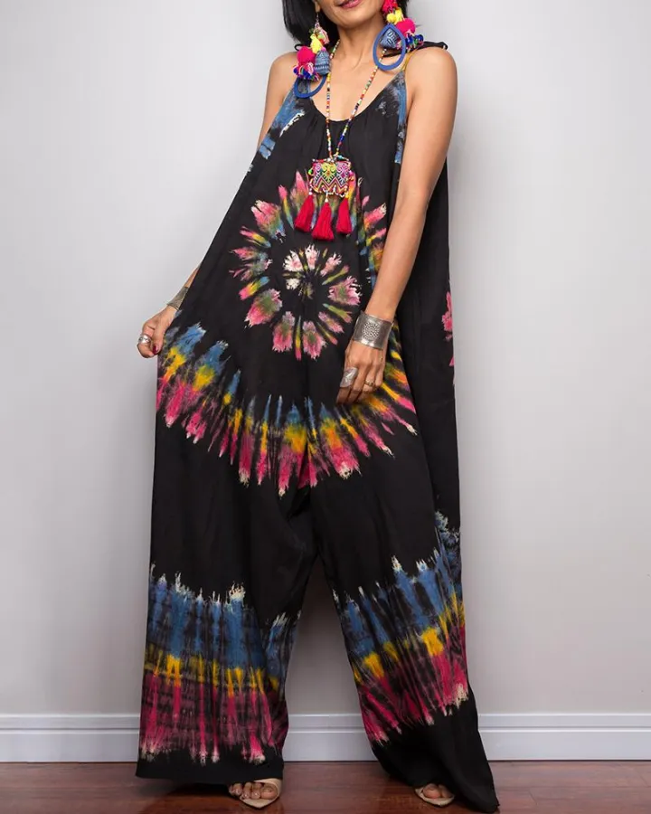 Be the first to review “Tie-Dye Print Wide-Leg Lace-Up Loose Jumpsuit”